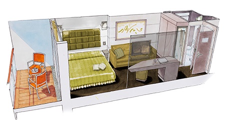 - Vnější kajuta s balkónem je nabízena v kategoriích bella experience, fantastica experience, wellness experience a areua experience.