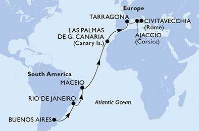 | Den 18 | Ajaccio , Korsika, (připlutí: 13:00 | odplutí: 19:00) |