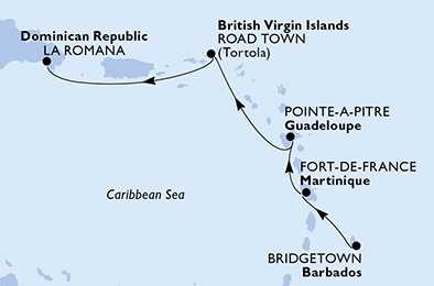 Barbados, Martinik, Guadeloupe, Britské Panenské ostrovy, Dominikánská republika z Bridgetownu na lodi MSC Opera