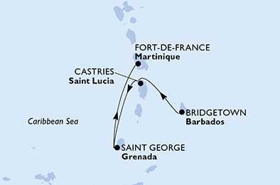 Barbados, Svatá Lucie, Grenada, Martinik z Bridgetownu na lodi MSC Virtuosa, plavba s bonusem