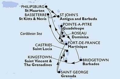 | Den 10 | Basseterre, Svatý Kryštof a Nevis, (připlutí: 09:00 | odplutí: 19:00) |