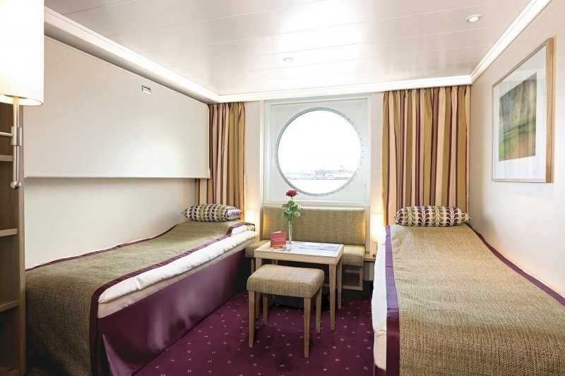 KATEGORIE S - vnější kajuta s oknem, 2 postele (možnost přistýlky), koupelna se sprchovým koutem, 1. podlaží, rozloha 14,2 m2