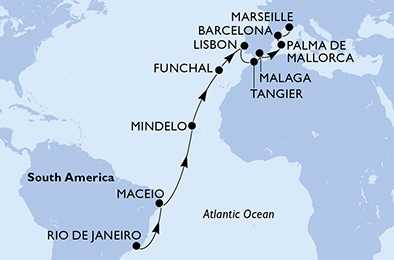 | Den 1 | Rio de Janeiro, Brazílie, (připlutí: --:-- | odplutí: 19:00) |
