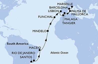 | Den 1 | Santos, Brazílie, (připlutí: --:-- | odplutí: 18:00) |