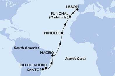 Brazílie, Kapverdy, Portugalsko ze Santosu na lodi MSC Seaview, plavba s bonusem