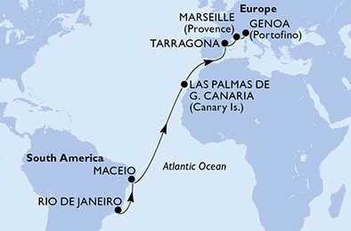 Brazílie, Španělsko, Francie, Itálie z Rio de Janeira na lodi MSC Musica, plavba s bonusem