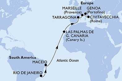 Brazílie, Španělsko, Francie, Itálie z Rio de Janeira na lodi MSC Musica, plavba s bonusem