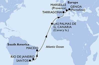 Brazílie, Španělsko, Francie, Itálie ze Santosu na lodi MSC Musica, plavba s bonusem