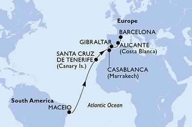 Brazílie, Španělsko, Maroko, Velká Británie z Maceia na lodi MSC Divina