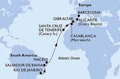 Brazílie, Španělsko, Maroko, Velká Británie z Rio de Janeira na lodi MSC Divina