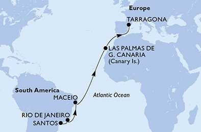 | Den 1 | Santos, Brazílie, (připlutí: --:-- | odplutí: 18:00) |
