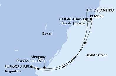 Brazílie, Uruguay, Argentina z Rio de Janeira na lodi MSC Splendida