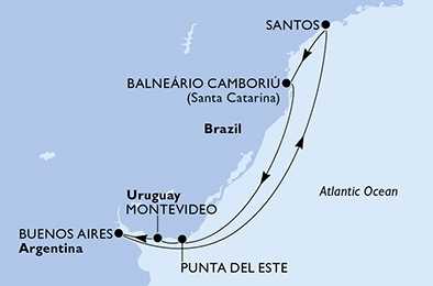 | Den 2 | Camboriu, Brazílie, (připlutí: 08:00 | odplutí: 18:00) |