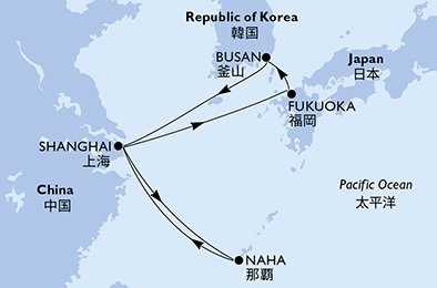 | Den 8 | Naha, Okinawa, (připlutí: 07:00 | odplutí: 20:00) |
