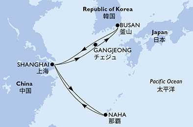 | Den 6 | Gangjeong, Jižní Korea, (připlutí: 14:30 | odplutí: 22:00) |