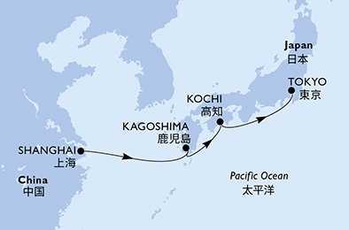 | Den 1 | Šanghaj, Čína, (připlutí: --:-- | odplutí: 16:30) |