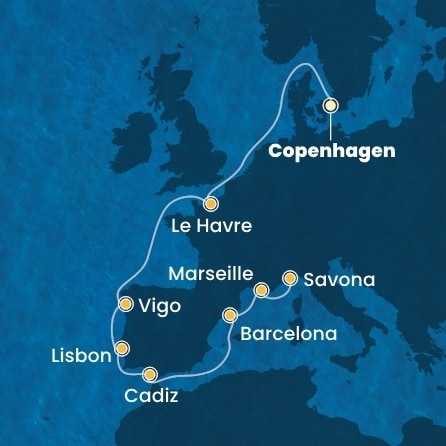 Dánsko, Francie, Španělsko, Portugalsko, Itálie z Kodaně na lodi Costa Diadema