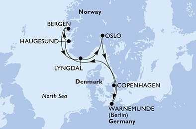 | Den 6 | Lyngdal, Norsko, (připlutí: 08:00 | odplutí: 17:00) |