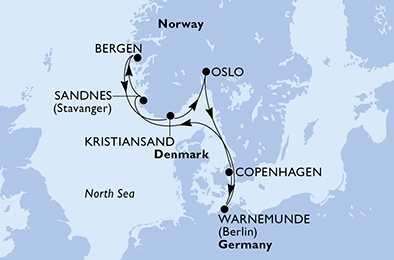 | Den 6 | Kristiansand, Norsko, (připlutí: 12:30 | odplutí: 19:30) |