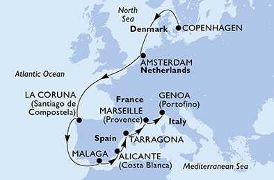 | Den 9 | Alicante, Španělsko, (připlutí: 09:00 | odplutí: 18:00) |