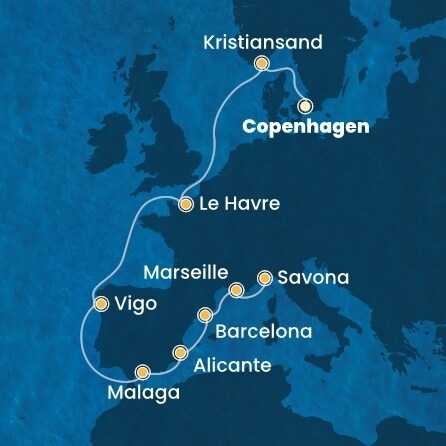 Dánsko, Norsko, Francie, Španělsko, Itálie z Kodaně na lodi Costa Diadema