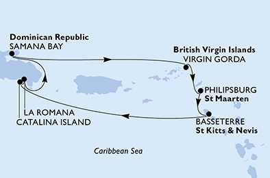 | Den 8 | La Romana, Dominikánská republika, (připlutí: 07:00 | odplutí: --:--) |