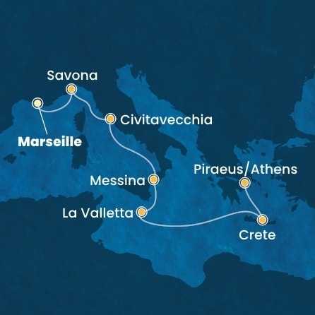 Francie, Itálie, Malta, Řecko z Marseille na lodi Costa Fortuna