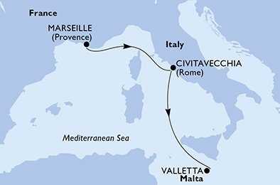 Francie, Itálie, Malta z Marseille na lodi MSC Poesia