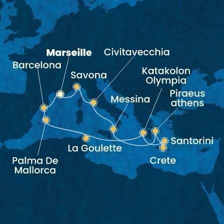 Francie, Itálie, Řecko, Tunisko, Španělsko z Marseille na lodi Costa Favolosa