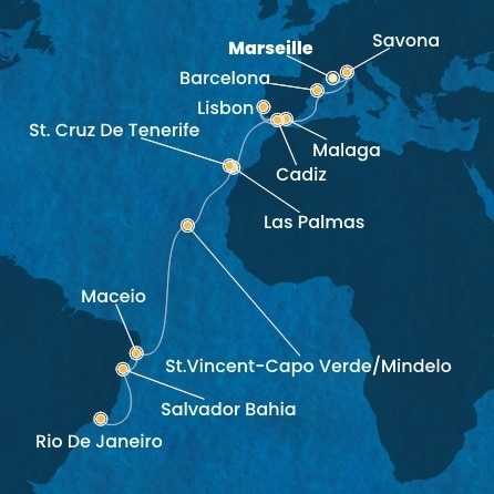 Francie, Itálie, Španělsko, Portugalsko, Kapverdy, Brazílie z Marseille na lodi Costa Diadema