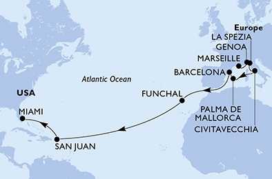 Francie, Itálie, Španělsko, Portugalsko, USA z Marseille na lodi MSC Grandiosa