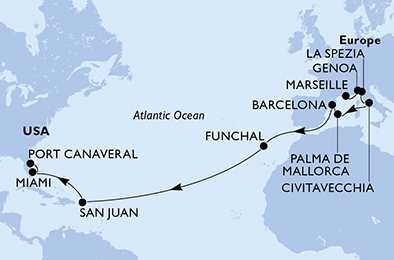 Francie, Itálie, Španělsko, Portugalsko, USA z Marseille na lodi MSC Grandiosa, plavba s bonusem