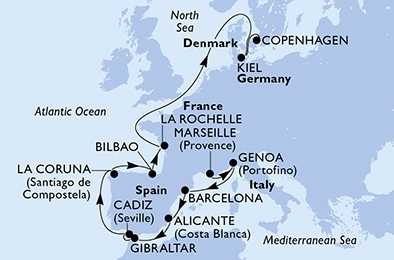 | Den 9 | La Coruña, Španělsko, (připlutí: 08:00 | odplutí: 17:00) |