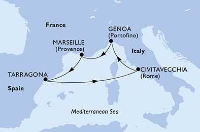 | Den 6 | Marseille, Francie, (připlutí: 08:00 | odplutí: --:--) |