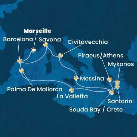 Francie, Španělsko, Malta, Řecko, Itálie z Marseille na lodi Costa Fascinosa