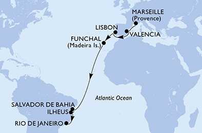 Francie, Španělsko, Portugalsko, Brazílie z Marseille na lodi MSC Musica