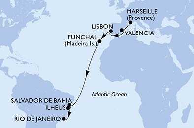 Francie, Španělsko, Portugalsko, Brazílie z Marseille na lodi MSC Musica, plavba s bonusem
