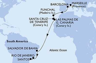 Francie, Španělsko, Portugalsko, Brazílie z Marseille na lodi MSC Virtuosa, plavba s bonusem