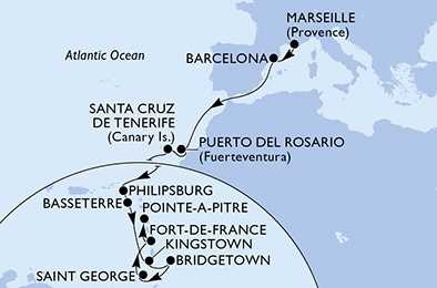 | Den 14 | Basseterre, Svatý Kryštof a Nevis, (připlutí: 07:00 | odplutí: 18:00) |