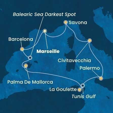 Francie, Španělsko, Tunisko, Itálie z Marseille na lodi Costa Toscana
