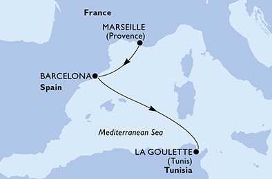 Francie, Španělsko, Tunisko z Marseille na lodi MSC Meraviglia