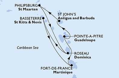 | Den 6 | Basseterre, Svatý Kryštof a Nevis, (připlutí: 08:00 | odplutí: 18:00) |