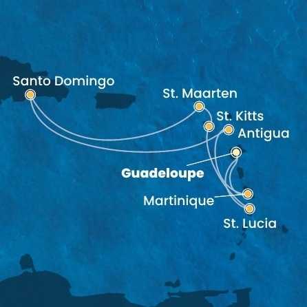 Guadeloupe, Svatá Lucie, Svatý Kryštof a Nevis, Svatý Martin, Dominikánská republika, Antigua a Barbuda, Martinik z Pointe-à-Pitre na lodi Costa Favolosa