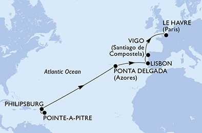 | Den 8 | Ponta Delgada, Azorské ostrovy, (připlutí: 09:00 | odplutí: 18:00) |