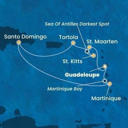Guadeloupe, Svatý Martin, Svatý Kryštof a Nevis, Britské Panenské ostrovy, Dominikánská republika, Martinik z Pointe-à-Pitre na lodi Costa Favolosa