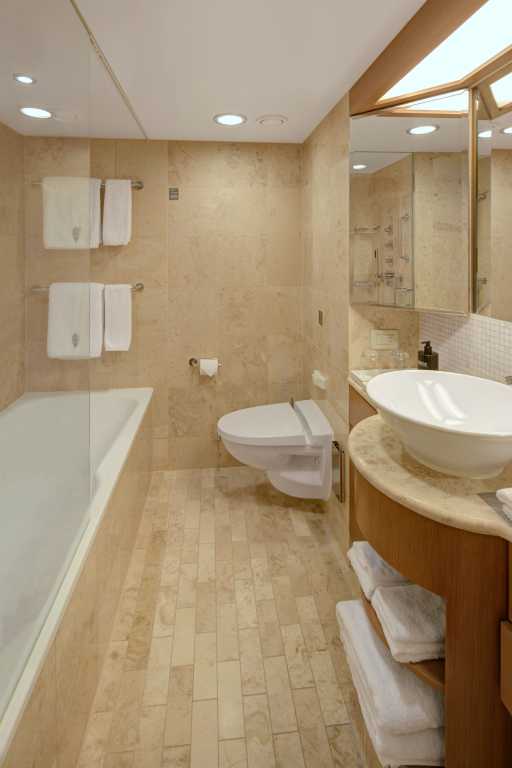 Ubytování v kajutě vybrané kategorie. Kajuty jsou vybavené samostatným sociálním zařízením, klimatizací, TV, minibarem, šatní skříní, kosmetickým stolkem, vysoušečem vlasů, trezorem a telefonem. Přístavní poplatky, portýrské služby při nalodění a vylodění, denní úklidový servis a výhody Vámi zvolené třídy ubytování.