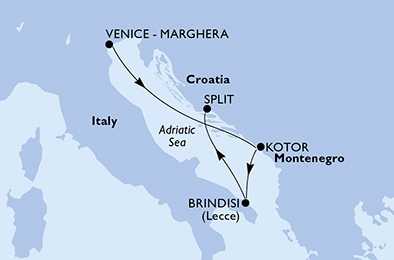 Itálie, Černá Hora, Chorvatsko z Marghery na lodi MSC Armonia