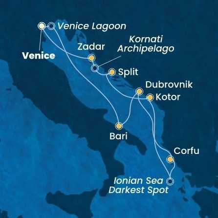 Itálie, Chorvatsko, Řecko, Černá Hora z Marghery na lodi Costa Deliziosa