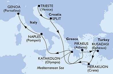 | Den 9 | Neapol, Itálie, (připlutí: 07:00 | odplutí: 13:00) |
