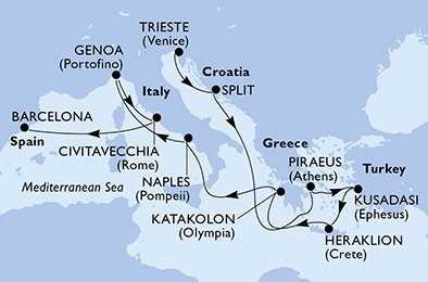 | Den 7 | Katakolon (Olympie), Řecko, (připlutí: 10:00 | odplutí: 17:00) |